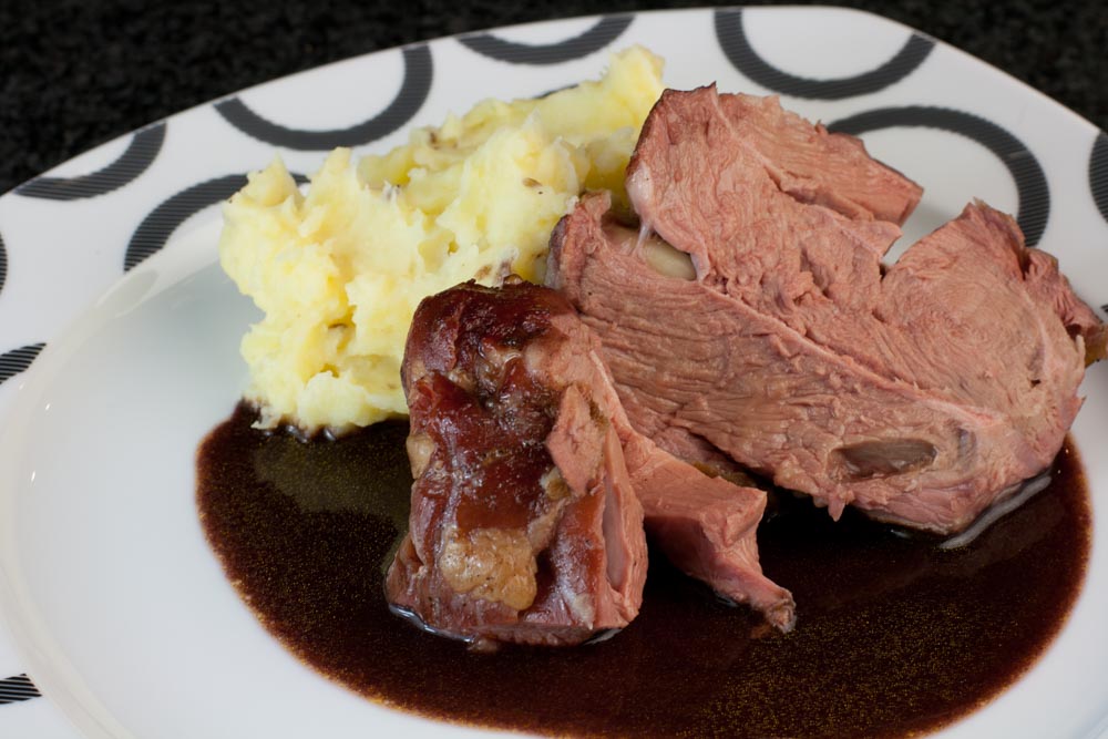 Lammstelze mit Kartoffelpüree