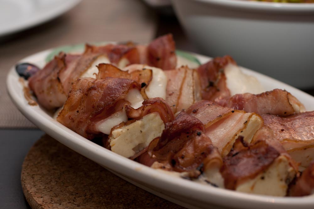 - Ziegengouda und Schafkäse mit Speck umwickelt