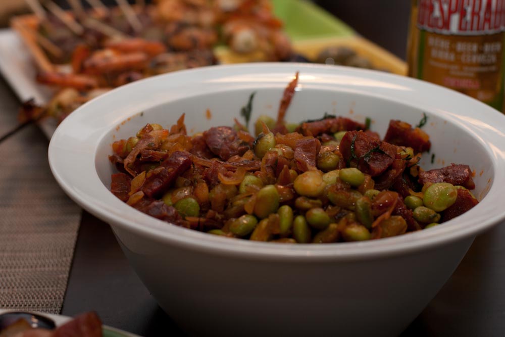 - Bohnensalat mit Serrano-Schinken und Chorizo